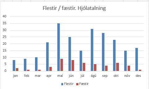 Hér má sjá tölur yfir flesta og fæsta sem taldir voru eftir mánuðum: